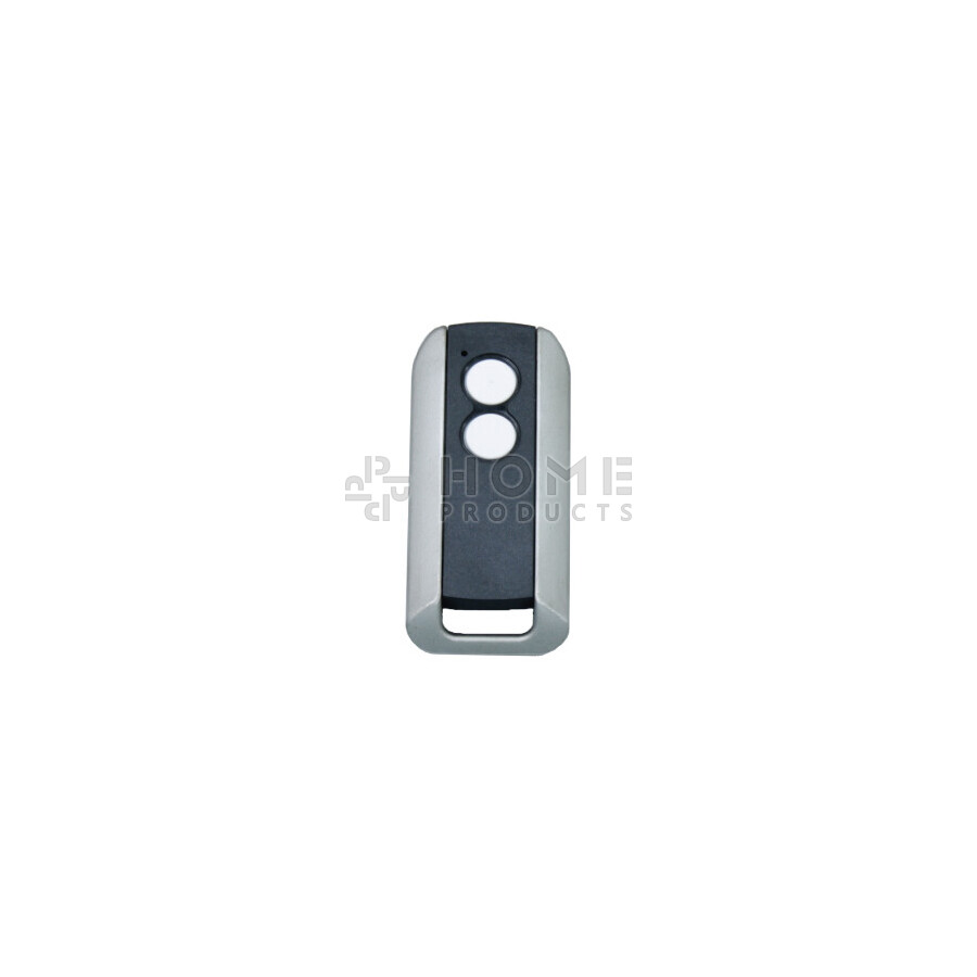 Prastel SLIM2E + 2 hand transmitter in matt black with metal contours and white buttons. Standard equipped with 2 channels. (AES128)